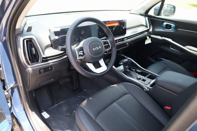 This Sorento is well equipped with Panoramic Sunroof Package (LED Interior Lighting and Panoramic Power Sunroof w/Power Sunshade), 3rd row seats: split-bench, 4-Wheel Disc Brakes, 6 Speakers, ABS brakes, Air Conditioning, Alloy wheels, AM/FM radio: SiriusXM, Apple CarPlay & Android Auto, Auto High-beam Headlights, Automatic temperature control, Brake assist, Bumpers: body-color, Carpeted Floor Mats, Delay-off headlights, Driver door bin, Driver vanity mirror, Dual front impact airbags, Dual front side impact airbags, Electronic Stability Control, Emergency communication system: 911 Connect, Exterior Parking Camera Rear, Four wheel independent suspension, Front anti-roll bar, Front Bucket Seats, Front Center Armrest, Front dual zone A/C, Front reading lights, Fully automatic headlights, Heated door mirrors, Heated Front Bucket Seats, Heated front seats, Illuminated entry, Knee airbag, Leather Shift Knob, Leather steering wheel, Low tire pressure warning, Navigation System, Occupant sensing airbag, Outside temperature display, Overhead airbag, Overhead console, Panic alarm, Passenger door bin, Passenger vanity mirror, Power door mirrors, Power driver seat, Power steering, Power windows, Radio data system, Radio: AM/FM Standard Sound System, Rear anti-roll bar, Rear reading lights, Rear seat center armrest, Rear side impact airbag, Rear window defroster, Rear window wiper, Remote keyless entry, Security system, Speed control, Speed-sensing steering, Split folding rear seat, Spoiler, Steering wheel mounted audio controls, SynTex Artificial Leather Seat Trim, Tachometer, Telescoping steering wheel, Tilt steering wheel, Traction control, Trip computer, Turn signal indicator mirrors, Variably intermittent wipers, and Wheels: 18" Gloss Black Alloy.