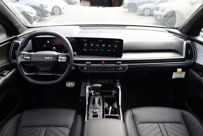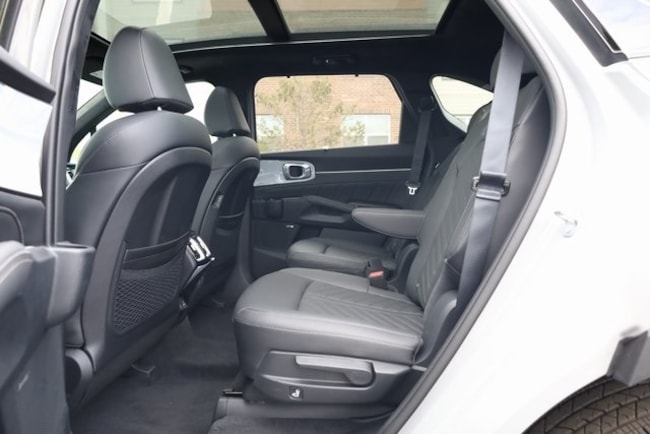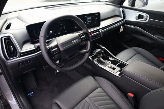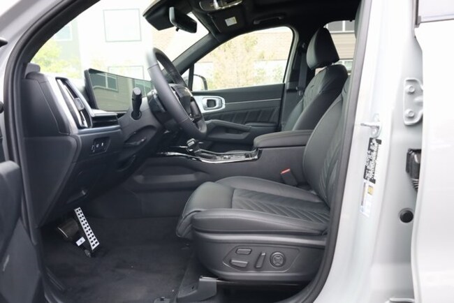 This Sorento is well equipped with AWD, ABS brakes, Active Cruise Control, Alloy wheels, Electronic Stability Control, Front dual zone A/C, Heated & Ventilated Front Bucket Seats, Heated door mirrors, Heated front seats, Heated rear seats, Illuminated entry, Low tire pressure warning, Navigation System, Power Liftgate, Power moonroof, Remote keyless entry, Traction control, 12 Speakers, 3rd row seats: split-bench, 4-Wheel Disc Brakes, Air Conditioning, AM/FM radio: SiriusXM, Apple CarPlay & Android Auto, Auto High-beam Headlights, Auto-dimming Rear-View mirror, Automatic temperature control, Brake assist, Bumpers: body-color, Delay-off headlights, Driver door bin, Driver vanity mirror, Dual front impact airbags, Dual front side impact airbags, Emergency communication system: 911 Connect, Exterior Parking Camera Rear, Four wheel independent suspension, Front anti-roll bar, Front Bucket Seats, Front Center Armrest, Front fog lights, Front reading lights, Fully automatic headlights, Garage door transmitter: HomeLink, Heated steering wheel, Knee airbag, Leather Shift Knob, Leather steering wheel, Memory seat, Occupant sensing airbag, Outside temperature display, Overhead airbag, Overhead console, Panic alarm, Passenger door bin, Passenger vanity mirror, Perforated Genuine Leather Seat Trim, Power door mirrors, Power driver seat, Power passenger seat, Power steering, Power windows, Radio data system, Radio: AM/FM Bose Premium Audio System, Rain sensing wipers, Rear anti-roll bar, Rear reading lights, Rear side impact airbag, Rear window defroster, Rear window wiper, Security system, Speed control, Speed-sensing steering, Split folding rear seat, Spoiler, Steering wheel mounted audio controls, Tachometer, Telescoping steering wheel, Tilt steering wheel, Trip computer, Turn signal indicator mirrors, Variably intermittent wipers, Ventilated front seats, and Wheels: 20" Gloss Black X-Line Alloy.