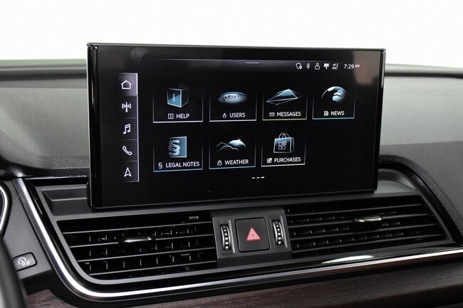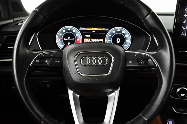 This Q5 is well equipped with Convenience Package (Audi Advanced Key, Auto-Dimming Power Folding Exterior Mirrors, Driver Seat Memory, Heated Steering Wheel, and SiriusXM All Access Service), Navigation Package (Audi Connect PRIME & PLUS and MMI Navigation Plus), Premium Plus Package (Adaptive Cruise Control w/Traffic Jam Assist, Audi Active Lane Assist, Audi Phone Box, Audi Virtual Cockpit Plus, Hands-On Detection Steering Wheel, Leatherette Covered Center Console & Door Armrests, Panoramic Sunroof, Top View Camera System, and Wheels: 19" 5-Double-Arm Design Bi-Color Finish), Brown Leather, 10 Speakers, 4-Wheel Disc Brakes, 5.302 Axle Ratio, ABS brakes, Air Conditioning, Alloy wheels, AM/FM radio, Audi Beam-Rings, Auto High-beam Headlights, Auto-dimming Rear-View mirror, Automatic temperature control, Bang & Olufsen Sound System w/3D Sound, Brake assist, Bumpers: body-color, Compass, Delay-off headlights, Driver door bin, Driver vanity mirror, Dual front impact airbags, Dual front side impact airbags, Electronic Stability Control, Emergency communication system: Audi connect CARE, Exterior Parking Camera Rear, Four wheel independent suspension, Front anti-roll bar, Front Bucket Seats, Front Center Armrest, Front dual zone A/C, Front fog lights, Front reading lights, Garage door transmitter: HomeLink, Genuine wood console insert, Genuine wood dashboard insert, Genuine wood door panel insert, Gray-Brown Birch Natural Wood Inlays, Heated 8-Way Power Front Bucket Seats, Heated door mirrors, Heated front seats, Illuminated entry, Leather Seating Surfaces, Leather Shift Knob, Low tire pressure warning, Occupant sensing airbag, Outside temperature display, Overhead airbag, Overhead console, Panic alarm, Passenger door bin, Passenger vanity mirror, Power door mirrors, Power driver seat, Power Liftgate, Power passenger seat, Power steering, Power windows, Radio data system, Radio: Audi Sound System, Rain sensing wipers, Rear air conditioning, Rear anti-roll bar, Rear fog lights, Rear Load Sill/Door Cup/Door Edge Paint Protection, Rear reading lights, Rear seat center armrest, Rear window defroster, Rear window wiper, Remote keyless entry, Roof rack, Security system, Speed control, Speed-sensing steering, Speed-Sensitive Wipers, Split folding rear seat, Spoiler, Steering wheel mounted audio controls, Tachometer, Telescoping steering wheel, Tilt steering wheel, Traction control, Trip computer, Turn signal indicator mirrors, USB Cables, Variably intermittent wipers, Wheels: 18" 5-Arm-Star Design, and Wheels: 20" 5-Arm Design.
