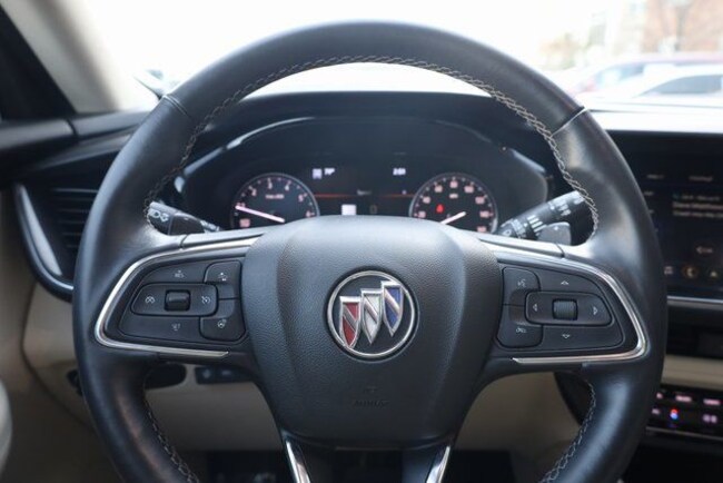 This Envision is well equipped with Preferred Equipment Group 1SL (Heated Driver & Front Passenger Seats and Heated Steering Wheel), Premium Seat Package (Driver 4-Way Power Lumbar Seat Adjuster and Front Passenger 4-Way Power Lumbar Seat Adjuster), Safety Package (Lane Change Alert w/Side Blind Zone Alert and Rear Cross Traffic Alert), Technology Package I (3-Channel Programmable Universal Home Remote, Bose Premium 9-Speaker Audio System Feature, Front & Rear Park Assist, HD Radio, HD Surround Vision, Head-Up Display, Memory Card Receptacle Audio System Feature, Radio: Buick Infotainment System AM/FM w/Nav, SiriusXM Radio, and Wireless Apple CarPlay/Wireless Android Auto), 3.47 Final Drive Axle Ratio, 4-Wheel Disc Brakes, 7 Speakers, 7-Speaker Audio System Feature w/Amplifier, 8-Way Power Driver Seat Adjuster, ABS brakes, Air Conditioning, Alloy wheels, AM/FM radio: SiriusXM, Apple CarPlay/Android Auto, Auto High-beam Headlights, Auto-dimming door mirrors, Auto-dimming Rear-View mirror, Automatic temperature control, Brake assist, Bumpers: body-color, Compass, Delay-off headlights, Driver door bin, Driver vanity mirror, Dual front impact airbags, Dual front side impact airbags, Electronic Stability Control, Emergency communication system: OnStar and Buick connected services capable, Four wheel independent suspension, Front anti-roll bar, Front Bin Center Console USB Ports, Front Bucket Seats, Front Center Armrest, Front dual zone A/C, Front Passenger 8-Way Power Seat Adjuster, Front reading lights, Fully automatic headlights, Heated door mirrors, Heated front seats, Heated steering wheel, Illuminated entry, Knee airbag, Low tire pressure warning, Memory seat, Occupant sensing airbag, Outside temperature display, Overhead airbag, Overhead console, Panic alarm, Passenger door bin, Passenger vanity mirror, Perforated Leather-Appointed Seat Trim, Power door mirrors, Power driver seat, Power Liftgate, Power passenger seat, Power steering, Power windows, Premium audio system: Buick Infotainment System, Radio data system, Radio: Buick Infotainment System AM/FM Stereo, Rear anti-roll bar, Rear reading lights, Rear seat center armrest, Rear window defroster, Rear window wiper, Remote keyless entry, Roof rack: rails only, Security system, Speed control, Split folding rear seat, Spoiler, Steering wheel mounted audio controls, Telescoping steering wheel, Tilt steering wheel, Traction control, Trip computer, USB Charging-Only Ports, Variably intermittent wipers, and Wheels: 18" Machined Aluminum w/Light Silver Met.