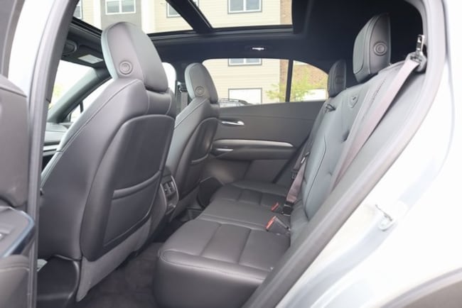 This XT4 is well equipped with Cold Weather Package (Heated Driver & Front Passenger Seats, Heated Rear Outboard Seating Positions, and Heated Steering Wheel), Floor Liner Package (LPO) (Cargo Liner (LPO) and Front & Rear All-Weather Floor Liners (LPO)), Preferred Equipment Group 1SE (6-Way Power Passenger Seat Adjuster, 7-Speaker Audio System, Auto-Dimming Inside Rear-View Mirror, Automatic Emergency Braking, Electronic Cruise Control w/Set & Resume Speed, HD Rear Vision Camera, and Manual Rake & Telescopic Steering Column), 3.47 Axle Ratio, 4-Way Driver Seat Power Lumbar Control, 4-Way Passenger Seat Power Lumbar Control, 4-Wheel Disc Brakes, 7 Speakers, 8-Way Power Driver Seat Adjuster, ABS brakes, Air Conditioning, Alloy wheels, AM/FM radio: SiriusXM with 360L, Apple CarPlay/Android Auto, Auto High-beam Headlights, Auto-dimming door mirrors, Auto-dimming Rear-View mirror, Automatic temperature control, Brake assist, Bumpers: body-color, Compass, Delay-off headlights, Driver door bin, Driver vanity mirror, Dual front impact airbags, Dual front side impact airbags, Dual Panel Glass Sunroof w/Power Tilt/Sliding, Electronic Stability Control, Emergency communication system: OnStar and Cadillac connected services capable, Four wheel independent suspension, Front & Rear Black Molded Splash Guards (LPO), Front anti-roll bar, Front Bucket Seats, Front Center Armrest, Front dual zone A/C, Front License Plate Bracket, Front reading lights, Fully automatic headlights, Garage door transmitter, Heated door mirrors, Illuminated entry, Knee airbag, Leather Seating Surfaces, Leather steering wheel, Low tire pressure warning, Memory seat, Monochrome Cadillac Emblems (LPO), Navigation system: Google Automotive Services Capable, Occupant sensing airbag, Outside temperature display, Overhead airbag, Overhead console, Panic alarm, Passenger door bin, Passenger vanity mirror, Power door mirrors, Power driver seat, Power Liftgate, Power passenger seat, Power steering, Power windows, Radio data system, Radio: Google Built-In Infotainment Experience, Rain sensing wipers, Rear anti-roll bar, Rear reading lights, Rear seat center armrest, Rear window defroster, Rear window wiper, Remote keyless entry, Road Emergency Tool Kit, Roof rack: rails only, Security system, SiriusXM w/360L, Speed control, Speed-sensing steering, Split folding rear seat, Spoiler, Standard Suspension, Steering wheel mounted audio controls, Tachometer, Telescoping steering wheel, Tilt steering wheel, Traction control, Trip computer, Turn signal indicator mirrors, Variably intermittent wipers, Voltmeter, Wheels: 18" Tri 5-Spoke Pearl Nickel Finish Alloy, and Wireless Apple CarPlay/Wireless Android Auto.