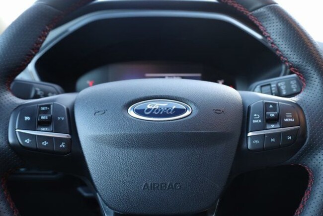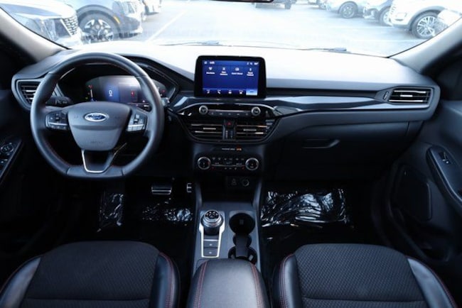 This Escape is well equipped with Cold Weather Package (Heated Front Row Seats, Heated Sideview Mirrors, Heated Steering Wheel, and Remote Starter System), Equipment Group 300A, AWD, 3.81 Axle Ratio, 4-Wheel Disc Brakes, 6 Speakers, ABS brakes, Air Conditioning, Alloy wheels, AM/FM radio: SiriusXM, AM/FM Stereo, Auto High-beam Headlights, Automatic temperature control, Brake assist, Bumpers: body-color, Compass, Delay-off headlights, Driver door bin, Driver vanity mirror, Dual front impact airbags, Dual front side impact airbags, Electronic Stability Control, Emergency communication system: SYNC 4 911 Assist, Exterior Parking Camera Rear, FordPass Connect, Four wheel independent suspension, Front anti-roll bar, Front Bucket Seats, Front Center Armrest, Front dual zone A/C, Front License Plate Bracket, Front reading lights, Fully automatic headlights, Illuminated entry, Knee airbag, Low tire pressure warning, Occupant sensing airbag, Outside temperature display, Overhead airbag, Overhead console, Panic alarm, Passenger door bin, Passenger vanity mirror, Power door mirrors, Power driver seat, Power Liftgate, Power steering, Power windows, Radio data system, Rear anti-roll bar, Rear reading lights, Rear seat center armrest, Rear window defroster, Rear window wiper, Remote keyless entry, Roof rack: rails only, Speed control, Speed-sensing steering, Speed-Sensitive Wipers, Split folding rear seat, Spoiler, Sport steering wheel, Steering wheel mounted audio controls, SYNC 4, Tachometer, Telescoping steering wheel, Tilt steering wheel, Traction control, Trip computer, Variably intermittent wipers, Vinyl/Cloth Front Sport Contour Bucket Seats, and Wheels: 18" Rock Metallic Painted Aluminum.