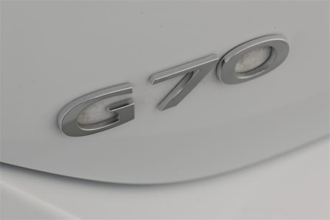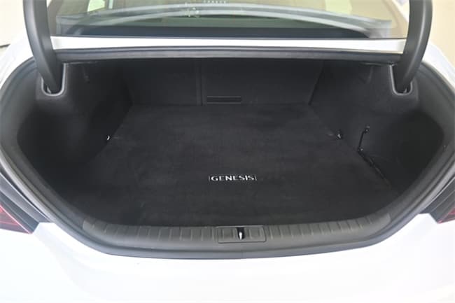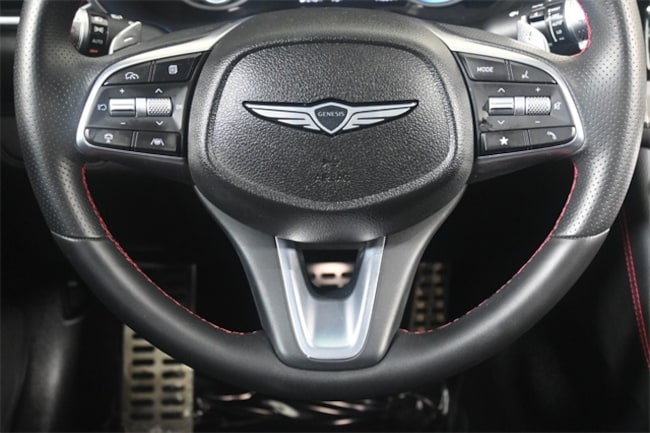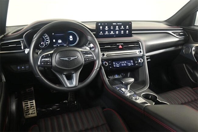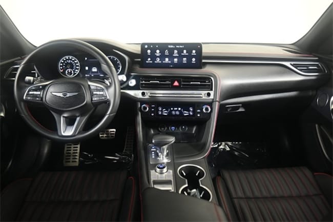This G70 is well equipped with Sport Prestige Package (4-Way Power Lumbar Front Passenger Seat, Acoustic Front Door Glass, Alloy Pedals, Dark Chrome Grille & Daylight Opening Trim, Forward & Reverse Parking Distance Warning, Front Passenger Seat Walk-In Device, Integrated Memory System (IMS), Leather Seating Surfaces, Option Group 02, Power Folding ECM Outside Mirrors, Power Telescoping Steering Wheel, Radio: AM/FM/SiriusXM/HD Lexicon Prem Audio System, Rain-Sensing Wipers, Sport Aluminum Trim, Ventilated Front Seats, Wheels: 19" x 8.0J Fr & 19" x 8.5J Rr Sport Alloy, Wide Sunroof, and Wireless Phone Charger), 4-Wheel Disc Brakes, 6 Speakers, ABS brakes, Air Conditioning, AM/FM radio: SiriusXM, Android Auto & Apple CarPlay, Anti-whiplash front head restraints, Auto High-beam Headlights, Auto-dimming Rear-View mirror, Automatic temperature control, Brake assist, Bumpers: body-color, Delay-off headlights, Driver door bin, Driver vanity mirror, Dual front impact airbags, Dual front side impact airbags, Electronic Stability Control, Emergency communication system: Genesis Connected Services, Exterior Parking Camera Rear, First Aid Kit, Four wheel independent suspension, Front anti-roll bar, Front Bucket Seats, Front Center Armrest, Front dual zone A/C, Front reading lights, Fully automatic headlights, Garage door transmitter: HomeLink, Heated door mirrors, Heated front seats, Heated Multi-Adjustable Front Bucket Seats, Illuminated entry, Knee airbag, Leatherette Seating Surfaces, Low tire pressure warning, Navigation System, Occupant sensing airbag, Outside temperature display, Overhead airbag, Overhead console, Panic alarm, Passenger door bin, Passenger vanity mirror, Power door mirrors, Power driver seat, Power passenger seat, Power steering, Power windows, Radio: AM/FM/SiriusXM/HD Audio System, Rear anti-roll bar, Rear reading lights, Rear seat center armrest, Rear side impact airbag, Rear window defroster, Remote keyless entry, Reversible Cargo Tray, Security system, Speed control, Speed-Sensitive Wipers, Split folding rear seat, Steering wheel mounted audio controls, Tachometer, Telescoping steering wheel, Traction control, Trip computer, Turn signal indicator mirrors, Variably intermittent wipers, and Wheel Locks.