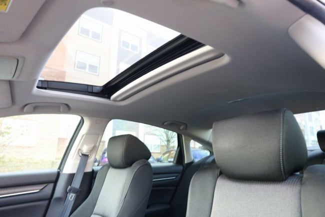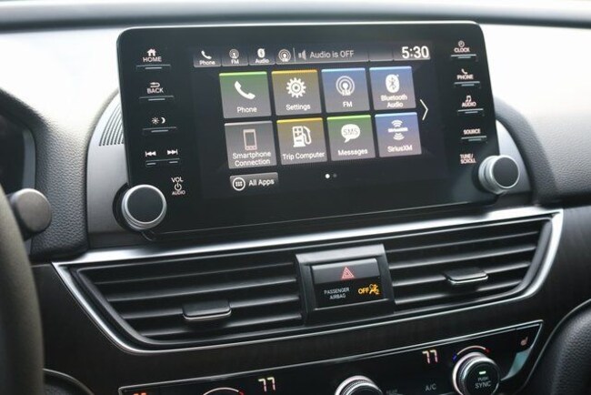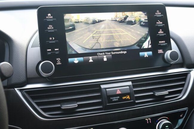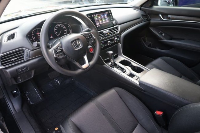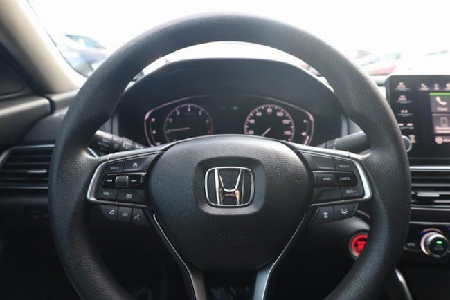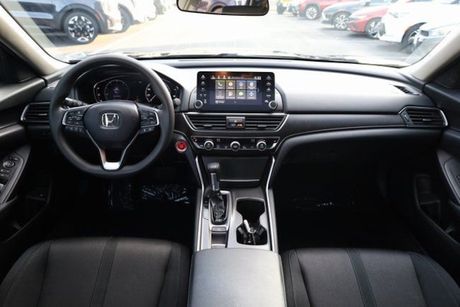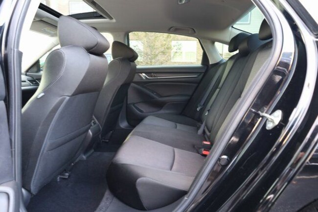 This Accord is well equipped with Black Cloth, 17" Machine-Finished Alloy Wheels, 4-Wheel Disc Brakes, 8 Speakers, ABS brakes, Adaptive Cruise Control: Adaptive Cruise Control (ACC) with Low-Speed Follow, Air Conditioning, Alloy wheels, AM/FM radio: SiriusXM, Apple CarPlay/Android Auto, Auto High-beam Headlights, Automatic temperature control, Blind Spot Information (BSI) System warning, Brake assist, Bumpers: body-color, Cloth Seat Trim, Delay-off headlights, Driver door bin, Driver vanity mirror, Dual front impact airbags, Dual front side impact airbags, Electronic Stability Control, Emergency communication system: HondaLink, Exterior Parking Camera Rear, Forward collision: Collision Mitigation Braking System (CMBS) + FCW mitigation, Four wheel independent suspension, Front anti-roll bar, Front Bucket Seats, Front Center Armrest, Front dual zone A/C, Front fog lights, Front reading lights, Fully automatic headlights, Heated door mirrors, Heated Front Bucket Seats, Heated front seats, Illuminated entry, Knee airbag, Lane Departure Warning System, Low tire pressure warning, Occupant sensing airbag, Outside temperature display, Overhead airbag, Overhead console, Panic alarm, Passenger door bin, Passenger vanity mirror, Power door mirrors, Power driver seat, Power moonroof, Power steering, Power windows, Radio data system, Radio: 180-Watt AM/FM/HD/SiriusXM Audio System, Rear anti-roll bar, Rear seat center armrest, Rear window defroster, Remote keyless entry, Security system, Speed control, Speed-sensing steering, Speed-Sensitive Wipers, Split folding rear seat, Steering wheel mounted audio controls, Tachometer, Telescoping steering wheel, Tilt steering wheel, Traction control, Trip computer, and Variably intermittent wipers.