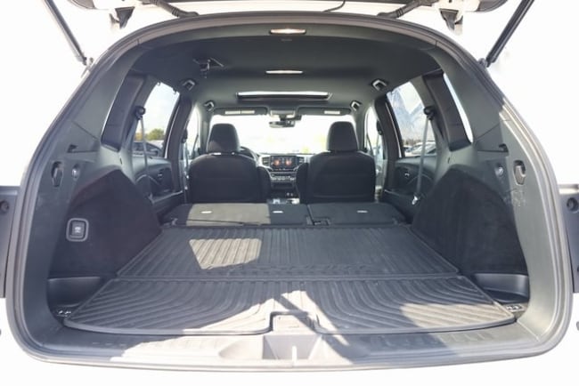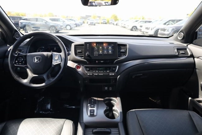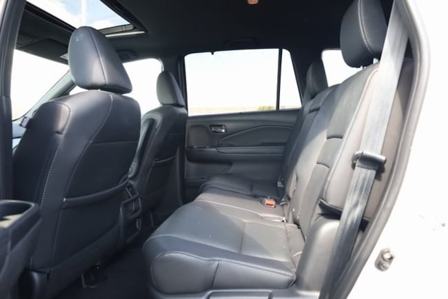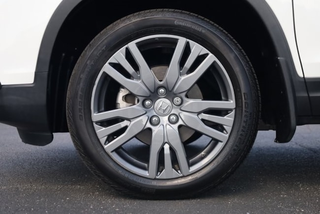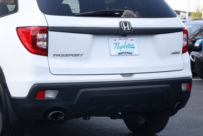 This Passport is well equipped with 4-Wheel Disc Brakes, 4.334 Axle Ratio, 7 Speakers, A/V remote: CabinControl, ABS brakes, Air Conditioning, Alloy wheels, AM/FM radio: SiriusXM, Apple CarPlay/Android Auto, Auto High-beam Headlights, Auto-dimming Rear-View mirror, Automatic temperature control, Blind Spot Information (BSI) System warning, Brake assist, Bumpers: body-color, Delay-off headlights, Driver door bin, Driver vanity mirror, Driver's Seat Mounted Armrest, Dual front impact airbags, Dual front side impact airbags, Electronic Stability Control, Emergency communication system: HondaLink Assist, Exterior Parking Camera Rear, Forward collision: Collision Mitigation Braking System (CMBS) + FCW mitigation, Four wheel independent suspension, Front anti-roll bar, Front Bucket Seats, Front Center Armrest, Front dual zone A/C, Front fog lights, Front reading lights, Fully automatic headlights, Garage door transmitter: HomeLink, Heated door mirrors, Heated Front Bucket Seats, Heated front seats, Illuminated entry, Lane departure: Lane Keeping Assist System (LKAS) active, Leather-Trimmed Seats, Low tire pressure warning, Memory seat, Occupant sensing airbag, Outside temperature display, Overhead airbag, Overhead console, Panic alarm, Passenger door bin, Passenger seat mounted armrest, Passenger vanity mirror, Power door mirrors, Power driver seat, Power Liftgate, Power moonroof, Power passenger seat, Power steering, Power windows, Radio data system, Radio: 215-Watt Audio System w/7 Speakers, Rear air conditioning, Rear anti-roll bar, Rear reading lights, Rear seat center armrest, Rear window defroster, Rear window wiper, Remote keyless entry, Security system, Speed control, Speed-sensing steering, Split folding rear seat, Spoiler, Steering wheel mounted audio controls, Tachometer, Telescoping steering wheel, Tilt steering wheel, Traction control, Trip computer, Turn signal indicator mirrors, Variably intermittent wipers, and Wheels: 20" Split-Spoke Pewter Gray Alloy.