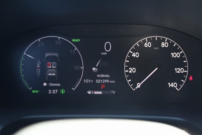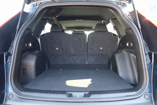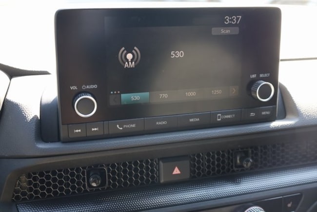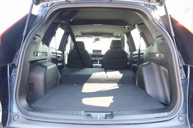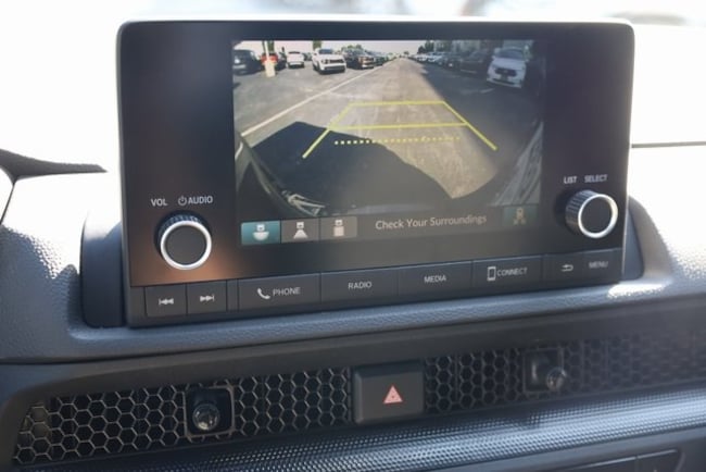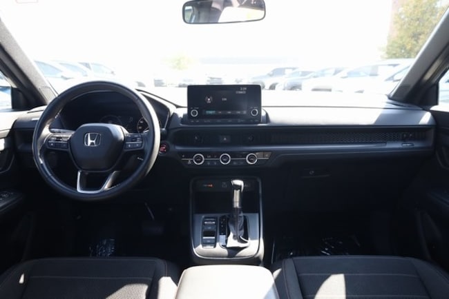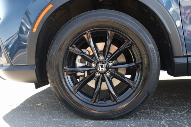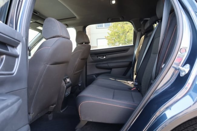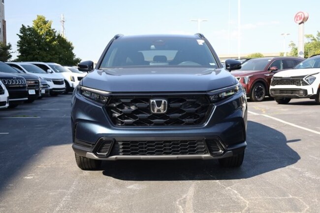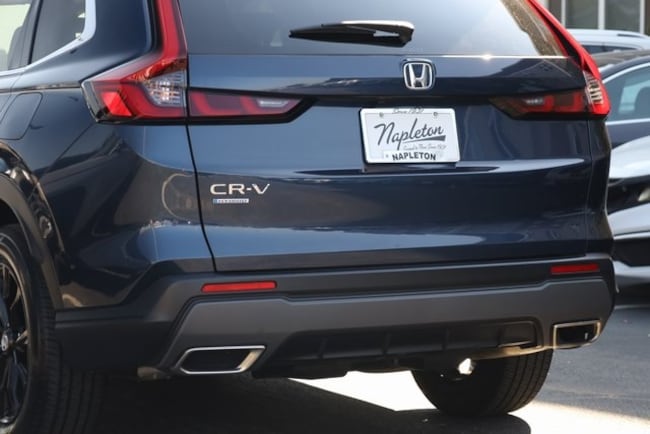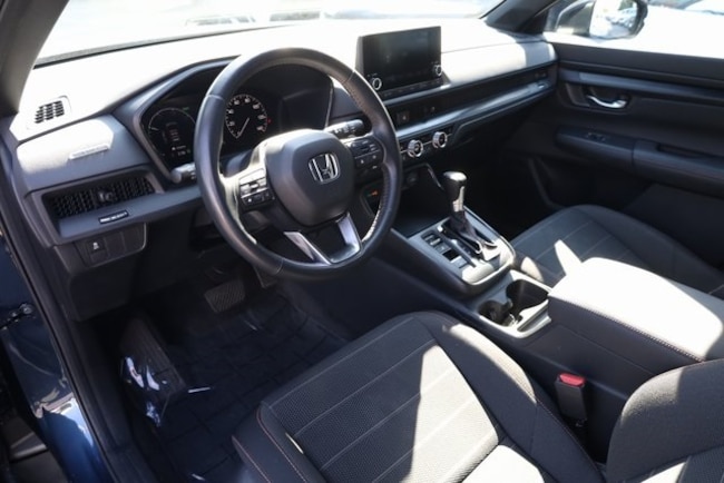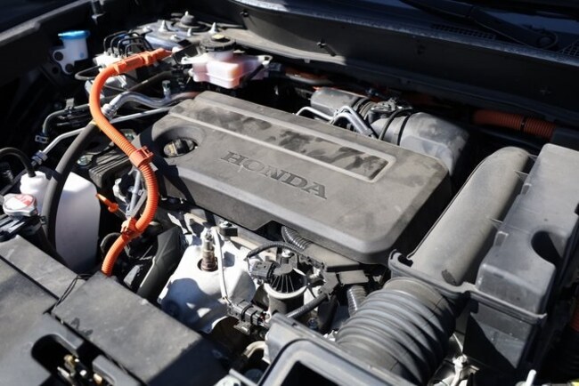 This CR-V Hybrid is well equipped with 2.0L I4 DOHC 16V, 4-Wheel Disc Brakes, 4.438 Axle Ratio, 6 Speakers, ABS brakes, Adaptive Cruise Control: Adaptive Cruise Control (ACC) with Low-Speed Follow, Air Conditioning, Alloy wheels, Apple CarPlay/Android Auto, Auto High-beam Headlights, Automatic temperature control, Blind Spot Information (BSI) System warning, Brake assist, Bumpers: body-color, Cloth Seat Trim, Compass, Delay-off headlights, Driver door bin, Driver vanity mirror, Dual front impact airbags, Dual front side impact airbags, Electronic Stability Control, Exterior Parking Camera Rear, Four wheel independent suspension, Front anti-roll bar, Front Bucket Seats, Front Center Armrest, Front dual zone A/C, Front reading lights, Fully automatic headlights, Heated door mirrors, Heated Front Bucket Seats, Heated front seats, Illuminated entry, Knee airbag, Leather Shift Knob, Leather steering wheel, Low tire pressure warning, Occupant sensing airbag, Outside temperature display, Overhead airbag, Overhead console, Panic alarm, Passenger door bin, Passenger vanity mirror, Power door mirrors, Power driver seat, Power moonroof, Power steering, Power windows, Radio data system, Radio: 240-Watt AM/FM Audio System, Rear anti-roll bar, Rear reading lights, Rear seat center armrest, Rear side impact airbag, Rear window defroster, Rear window wiper, Remote keyless entry, Security system, Speed control, Speed-sensing steering, Speed-Sensitive Wipers, Split folding rear seat, Spoiler, Steering wheel mounted audio controls, Telescoping steering wheel, Tilt steering wheel, Traction control, Trip computer, Turn signal indicator mirrors, Variably intermittent wipers, and Wheels: 18" Berlina Black Alloy.