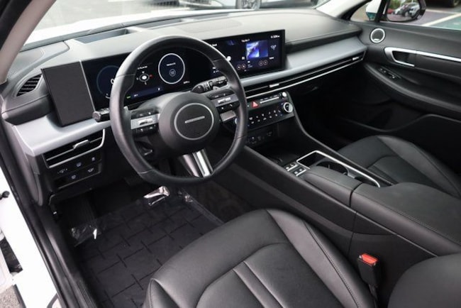 This Sonata Hybrid is well equipped with Option Group 01, I4, 12 Speakers, 17" x 7.0J Aluminum Alloy Wheels, 4-Wheel Disc Brakes, ABS brakes, Air Conditioning, Alloy wheels, AM/FM radio: SiriusXM, Apple CarPlay & Android Auto, Auto High-beam Headlights, Auto-dimming Rear-View mirror, Automatic temperature control, Brake assist, Bumpers: body-color, Cargo Tray, Carpeted Floor Mats, Delay-off headlights, Driver door bin, Driver vanity mirror, Dual front impact airbags, Dual front side impact airbags, Electronic Stability Control, Emergency communication system: Bluelink, First Aid Kit, Four wheel independent suspension, Front anti-roll bar, Front Bucket Seats, Front Center Armrest, Front dual zone A/C, Front reading lights, Fully automatic headlights, Heads-Up Display, Heated & Ventilated Front Bucket Seats, Heated door mirrors, Heated front seats, Heated steering wheel, Illuminated entry, Knee airbag, Lane Departure Warning System, Leather Seating Surfaces, Leather steering wheel, Low tire pressure warning, Memory seat, Mud Guards, Navigation System, Occupant sensing airbag, Outside temperature display, Overhead airbag, Overhead console, Panic alarm, Passenger door bin, Passenger vanity mirror, Power door mirrors, Power driver seat, Power moonroof, Power passenger seat, Power steering, Power windows, Radio data system, Radio: AM/FM/HD/SiriusXM, Rain sensing wipers, Rear anti-roll bar, Rear seat center armrest, Rear side impact airbag, Rear window defroster, Remote keyless entry, Security system, Speed control, Speed-sensing steering, Speed-Sensitive Wipers, Split folding rear seat, Spoiler, Steering wheel mounted audio controls, Tachometer, Telescoping steering wheel, Tilt steering wheel, Traction control, Trip computer, Trunk Cargo Net, Variably intermittent wipers, and Ventilated front seats.
