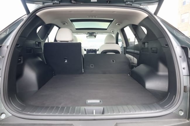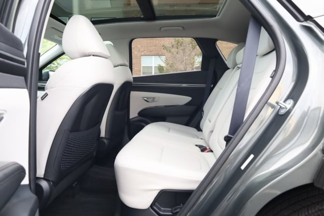 This Tucson Hybrid is well equipped with Option Group 01, I4, 3.32 Axle Ratio, 4-Wheel Disc Brakes, 6 Speakers, ABS brakes, Air Conditioning, Alloy wheels, AM/FM radio: SiriusXM, Apple CarPlay & Android Auto, Auto High-beam Headlights, Auto-dimming Rear-View mirror, Automatic temperature control, Brake assist, Bumpers: body-color, Carpeted Floor Mats, Delay-off headlights, Driver door bin, Driver vanity mirror, Dual front impact airbags, Dual front side impact airbags, Electronic Stability Control, Emergency communication system, Exterior Parking Camera Rear, First Aid Kit, Four wheel independent suspension, Front anti-roll bar, Front Bucket Seats, Front Center Armrest, Front dual zone A/C, Front reading lights, Fully automatic headlights, H-Tex Seat Trim, Heated door mirrors, Heated Front Bucket Seats, Heated front seats, Illuminated entry, Low tire pressure warning, Navigation System, Occupant sensing airbag, Outside temperature display, Overhead airbag, Overhead console, Panic alarm, Passenger door bin, Passenger vanity mirror, Power door mirrors, Power driver seat, Power Liftgate, Power moonroof, Power steering, Power windows, Radio data system, Radio: AM/FM/HD Audio System, Rear anti-roll bar, Rear reading lights, Rear seat center armrest, Rear side impact airbag, Rear window defroster, Rear window wiper, Remote keyless entry, Roof Rack Cross Rails, Security system, Speed control, Split folding rear seat, Spoiler, Steering wheel mounted audio controls, Tachometer, Telescoping steering wheel, Tilt steering wheel, Traction control, Trip computer, Turn signal indicator mirrors, Variably intermittent wipers, and Wheels: 19" x 7.5J" Machine-Face Finish Alloy.
