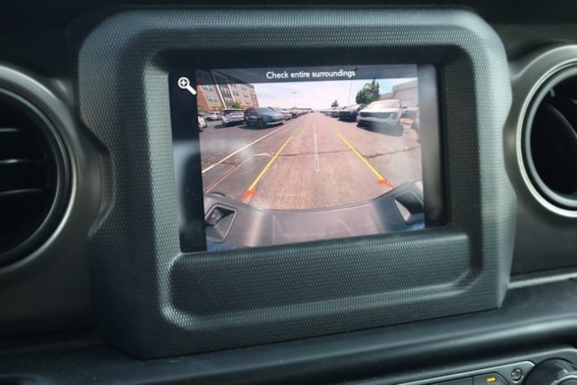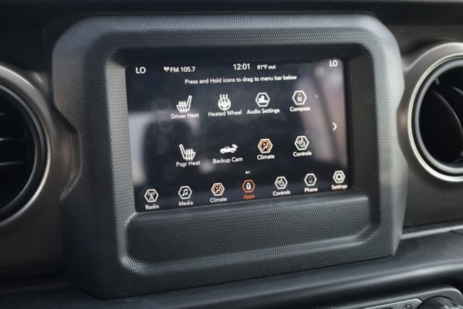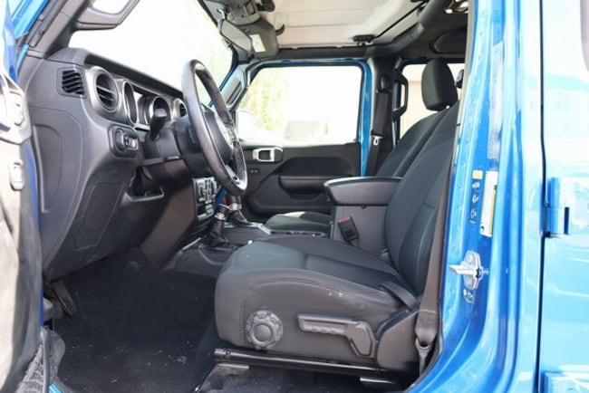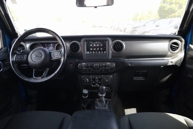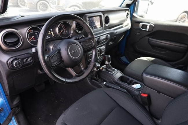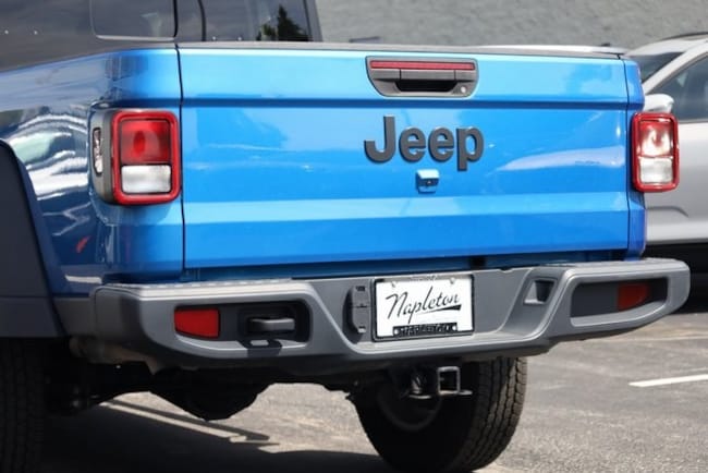 This Gladiator is well equipped with Auxiliary Switch Group, Cold Weather Group (110 MPH Vehicle Max Speed Calibration), Convenience Group, Max Tow Package w/4.10 Axle Ratio (4.10 Rear Axle Ratio and Anti-Spin Differential Rear Axle), Popular Equipment Package (Black 3-Piece Hard Top and Rear Sliding Window), Quick Order Package 24S Sport S (Power Heated Mirrors and Wheels: 17" x 7.5" Tech Silver Aluminum), Technology Group (2-Door Passive Entry, Front Door Locks, GPS Antenna Input, and SiriusXM Satellite Radio), 3.73 Rear Axle Ratio, 4-Wheel Disc Brakes, 8 Speakers, ABS brakes, Air Conditioning, AM/FM radio, Apple CarPlay, Apple CarPlay/Android Auto, Black Molded-In-Color Fender Flares (2-Piece), Brake assist, Cloth Low-Back Bucket Seats, Compass, Corning Gorilla Glass, Delay-off headlights, Driver door bin, Driver vanity mirror, Dual front impact airbags, Dual front side impact airbags, Electronic Stability Control, Emergency communication system: SiriusXM Guardian, Front anti-roll bar, Front Bucket Seats, Front Center Armrest w/Storage, Front fog lights, Front reading lights, Google Android Auto, Integrated Center Stack Radio, Integrated roll-over protection, Integrated Voice Command w/Bluetooth, Low tire pressure warning, MOPAR Spray In Bedliner, Normal Duty Suspension, Occupant sensing airbag, Outside temperature display, ParkView Rear Back-Up Camera, Passenger door bin, Passenger vanity mirror, Power steering, Radio data system, Radio: Uconnect 4 w/7" Display, Rear anti-roll bar, Rear reading lights, Speed control, Split folding rear seat, Steering wheel mounted audio controls, Tachometer, Telescoping steering wheel, Tilt steering wheel, Traction control, Trip computer, USB Host Flip, Variably intermittent wipers, and Wheels: 17" x 7.5" Black Steel Styled.