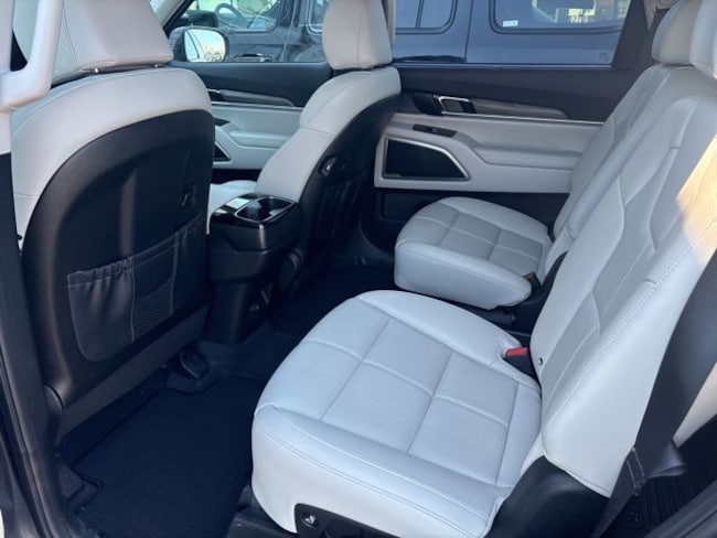 Step inside the Telluride EX and discover a cabin that exudes sophistication and attention to detail. Leather-wrapped steering wheel and shift knob, along with heated and ventilated front seats, create a luxurious environment that caters to your every need. The spacious interior, with its split-folding rear seats and available third-row seating, offers ample room for your family and cargo.