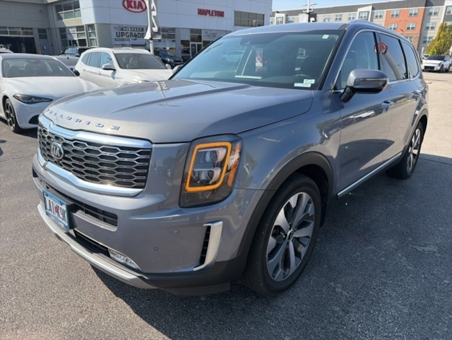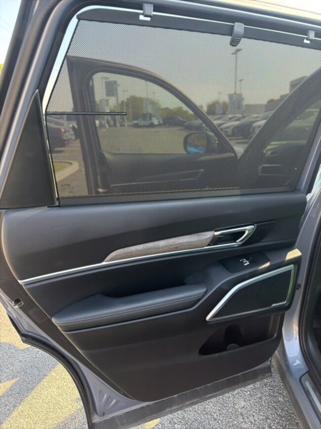 This Telluride is well equipped with 10 Speakers, 3.648 Axle Ratio, 3rd row seats: split-bench, 4-Wheel Disc Brakes, ABS brakes, Air Conditioning, Alloy wheels, AM/FM radio: SiriusXM, Apple CarPlay & Android Auto, Auto High-beam Headlights, Auto-dimming Rear-View mirror, Automatic temperature control, Brake assist, Bumpers: body-color, Compass, Delay-off headlights, Driver door bin, Driver vanity mirror, Dual front impact airbags, Dual front side impact airbags, Electronic Stability Control, Emergency communication system: 911 Connect, Four wheel independent suspension, Front anti-roll bar, Front Bucket Seats, Front Center Armrest, Front dual zone A/C, Front fog lights, Front reading lights, Fully automatic headlights, Garage door transmitter: HomeLink, Heated & Ventilated Front Bucket Seats, Heated door mirrors, Heated front seats, Heated steering wheel, Illuminated entry, Knee airbag, Leather Seat Trim, Leather Shift Knob, Leather steering wheel, Low tire pressure warning, Memory seat, Navigation System, Occupant sensing airbag, Outside temperature display, Overhead airbag, Overhead console, Panic alarm, Passenger door bin, Passenger vanity mirror, Power door mirrors, Power driver seat, Power Liftgate, Power moonroof, Power passenger seat, Power steering, Power windows, Radio data system, Radio: AM/FM/SIRIUS Premium Audio, Rear air conditioning, Rear anti-roll bar, Rear audio controls, Rear reading lights, Rear window defroster, Rear window wiper, Reclining 3rd row seat, Remote keyless entry, Roof rack: rails only, Security system, Smart Key w/ Push Button and Remote Start, Speed control, Speed-sensing steering, Split folding rear seat, Spoiler, Steering wheel mounted audio controls, Tachometer, Telescoping steering wheel, Tilt steering wheel, Traction control, Trip computer, Turn signal indicator mirrors, Variably intermittent wipers, Ventilated front seats, and Wheels: 7.5" x 20" Black Finish Alloy.