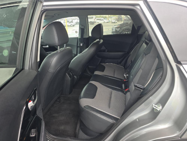 This Niro EV is well equipped with Cold Weather Package (Battery Heater, Heat Pump, and Heated Steering Wheel), Heated door mirrors, Heated front seats, Remote keyless entry, 4-Wheel Disc Brakes, 6 Speakers, 7J x 17" Alloy Wheels, 8.206 Axle Ratio, ABS brakes, Air Conditioning, Alloy wheels, AM/FM radio: SiriusXM, Auto High-beam Headlights, Automatic temperature control, Bodyside moldings, Brake assist, Bumpers: body-color, Carpeted Floor Mats, Cloth & SynTex Seat Trim, Delay-off headlights, Driver door bin, Driver vanity mirror, Dual front impact airbags, Dual front side impact airbags, Electronic Stability Control, Emergency communication system: UVO Link, Four wheel independent suspension, Front anti-roll bar, Front Bucket Seats, Front Center Armrest, Front fog lights, Front reading lights, Fully automatic headlights, Heated Front Bucket Seats, Illuminated entry, Knee airbag, Low tire pressure warning, Occupant sensing airbag, Outside temperature display, Overhead airbag, Overhead console, Panic alarm, Passenger door bin, Passenger vanity mirror, Power door mirrors, Power driver seat, Power steering, Power windows, Radio: 6-Speaker Audio System, Rear anti-roll bar, Rear seat center armrest, Rear window defroster, Rear window wiper, Roof rack: rails only, Security system, Speed control, Speed-sensing steering, Split folding rear seat, Spoiler, Steering wheel mounted audio controls, Telescoping steering wheel, Tilt steering wheel, Traction control, Trip computer, Turn signal indicator mirrors, and Variably intermittent wipers.