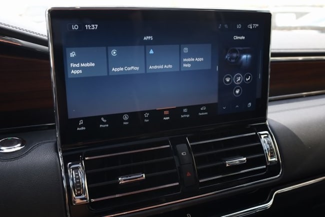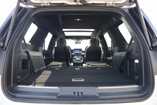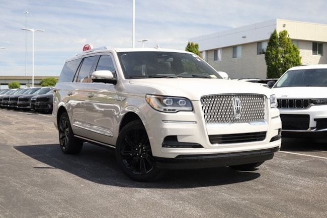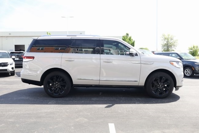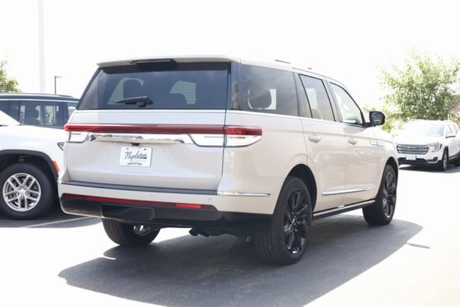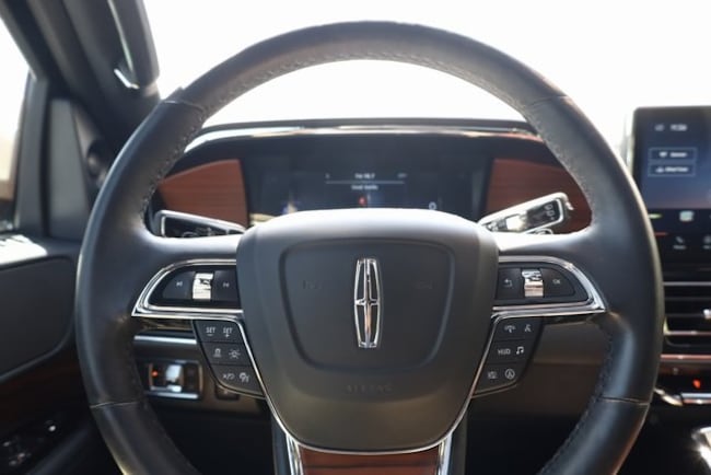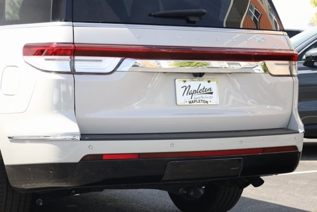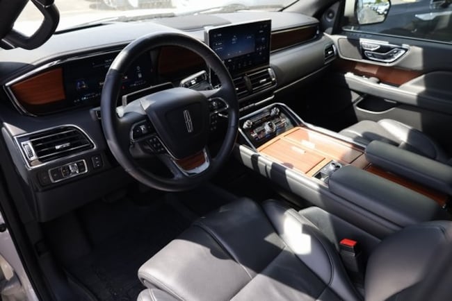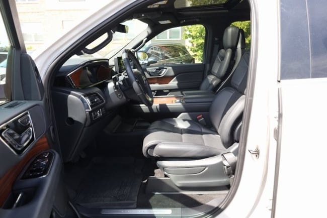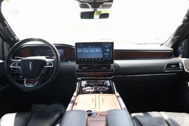 This Lincoln Navigator is well equipped with Equipment Group 200A Reserve, Monochromatic Package (Body-Color Exterior Mirror Finish, Monochromatic Lincoln Badge, Monochromatic Lincoln Grille, and Wheels: 22" Black Aluminum), 4WD, Black Onyx Leather, 14 Speakers, 3.73 Axle Ratio, 3rd row seats: split-bench, 4-Wheel Disc Brakes, ABS brakes, Adaptive suspension, Adjustable pedals, Air Conditioning, All-Weather Floor Liners w/o Fr/Rr Carpet Flr Mats, Alloy wheels, AM/FM radio: SiriusXM with 360L, Apple CarPlay/Android Auto, Audio memory, Auto High-beam Headlights, Auto Start-Stop Technology, Auto tilt-away steering wheel, Auto-dimming door mirrors, Auto-dimming Rear-View mirror, Auto-leveling suspension, Automatic temperature control, Bodyside moldings, Brake assist, Bumpers: body-color, Cargo Area Protector, Compass, Delay-off headlights, Driver door bin, Driver vanity mirror, Driver's Seat Mounted Armrest, Dual front impact airbags, Dual front side impact airbags, Electronic Stability Control, Emergency communication system: 911 Assist, Exterior Parking Camera Rear, Four wheel independent suspension, Front anti-roll bar, Front Bucket Seats, Front dual zone A/C, Front fog lights, Front reading lights, Fully automatic headlights, Garage door transmitter, Genuine wood dashboard insert, Genuine wood door panel insert, Head restraints memory, Heads-Up Display, Heated door mirrors, Heated front seats, Heated rear seats, Heated steering wheel, HVAC memory, Illuminated entry, Lane Departure Warning System, Leather steering wheel, Low tire pressure warning, Memory seat, Navigation system: Connected Navigation (1-year trial), Occupant sensing airbag, Outside temperature display, Overhead airbag, Overhead console, Panic alarm, Passenger door bin, Passenger seat mounted armrest, Passenger vanity mirror, Pedal memory, Power adjustable rear head restraints, Power door mirrors, Power driver seat, Power Liftgate, Power moonroof: Panoramic Vista Roof, Power passenger seat, Power steering, Power windows, Prem Lthr Auto Htd/Ventiltd Perfect Position Seats, Radio data system, Radio: Revel Audio System w/Satelllite/AM/FM/HD, Rain sensing wipers, Rear air conditioning, Rear anti-roll bar, Rear audio controls, Rear reading lights, Rear window defroster, Rear window wiper, Reclining 3rd row seat, Remote keyless entry, Security system, SiriusXM w/360L, Speed control, Speed-sensing steering, Speed-Sensitive Wipers, Split folding rear seat, Spoiler, Steering wheel memory, Steering wheel mounted audio controls, SYNC 4 Communications & Entertainment System, Tachometer, Telescoping steering wheel, Tilt steering wheel, Traction control, Trip computer, Turn signal indicator mirrors, Variably intermittent wipers, Ventilated front seats, Ventilated rear seats, Voice-Activated Touchscreen Navigation System, and Wheels: 22" Bright Machined Aluminum.