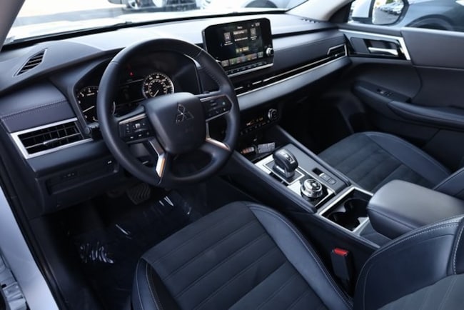 This Outlander is well equipped with 4WD, ABS brakes, Active Cruise Control, Alloy wheels, Electronic Stability Control, Front dual zone A/C, Heated door mirrors, Heated Front Bucket Seats, Heated front seats, Illuminated entry, Low tire pressure warning, Navigation System, Power Liftgate, Remote keyless entry, Traction control, 3rd row seats: split-bench, 4-Wheel Disc Brakes, 5.694 Axle Ratio, 6 Speakers, Air Conditioning, AM/FM radio: SiriusXM, Android Auto & Apple CarPlay, Auto High-beam Headlights, Automatic temperature control, Brake assist, Bumpers: body-color, Driver door bin, Driver vanity mirror, Dual front impact airbags, Dual front side impact airbags, Emergency communication system: Mitsubishi Connect w/ 24-month trial, Exterior Parking Camera Rear, Four wheel independent suspension, Front anti-roll bar, Front Bucket Seats, Front Center Armrest w/Storage, Front fog lights, Front reading lights, Fully automatic headlights, Headlight cleaning, Knee airbag, Leather Shift Knob, Leather steering wheel, Occupant sensing airbag, Outside temperature display, Overhead airbag, Overhead console, Panic alarm, Passenger door bin, Passenger vanity mirror, Power door mirrors, Power driver seat, Power steering, Power windows, Radio data system, Radio: AM/FM 9.0" Navigation w/Smartphone Link, Rain sensing wipers, Rear anti-roll bar, Rear seat center armrest, Rear side impact airbag, Rear window defroster, Rear window wiper, Reclining 3rd row seat, Security system, Speed control, Speed-Sensitive Wipers, Split folding rear seat, Spoiler, Steering wheel mounted audio controls, Synthetic Leather Seat Trim, Tachometer, Telescoping steering wheel, Tilt steering wheel, Trip computer, Turn signal indicator mirrors, Variably intermittent wipers, and Wheels: 20" Two-Tone Alloy.
