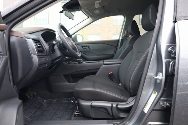 This Rogue is well equipped with AWD, 17" Aluminum Alloy Wheels, 4 Speakers, 4-Wheel Disc Brakes, 5.604 Axle Ratio, ABS brakes, Air Conditioning, Alloy wheels, AM/FM Radio, AM/FM radio: SiriusXM, Auto High-beam Headlights, Black Splash Guards (Set of 4), Blind Spot Warning, Brake assist, Bumpers: body-color, Cloth Seat Trim, Delay-off headlights, Driver door bin, Driver vanity mirror, Dual front impact airbags, Dual front side impact airbags, Electronic Stability Control, First Aid Kit, Floor Mats w/1-Piece Cargo Area Protector, Four wheel independent suspension, Front anti-roll bar, Front Bucket Seats, Front Center Armrest, Front reading lights, Fully automatic headlights, Illuminated entry, Knee airbag, Low tire pressure warning, NissanConnect featuring Apple CarPlay and Android Auto, Occupant sensing airbag, Outside temperature display, Overhead airbag, Overhead console, Panic alarm, Passenger door bin, Passenger vanity mirror, Power door mirrors, Power steering, Power windows, Radio data system, Rear anti-roll bar, Rear Parking Sensors, Rear seat center armrest, Rear side impact airbag, Rear window defroster, Rear window wiper, Remote keyless entry, Speed control, Speed-Sensitive Wipers, Split folding rear seat, Spoiler, Steering wheel mounted audio controls, Tachometer, Telescoping steering wheel, Tilt steering wheel, Traction control, Trip computer, and Variably intermittent wipers.