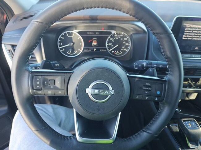 Step inside the Rogue SV and be captivated by the refined interior. The Leatherette-trimmed seats with heating for the driver and front passenger offer exceptional comfort, while the Panoramic Moonroof floods the cabin with natural light, creating a spacious and airy atmosphere. The Heated Leather-Wrapped Steering Wheel and Rear Door Sunshades add an extra touch of luxury and convenience.