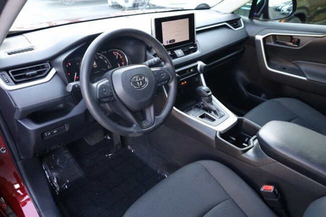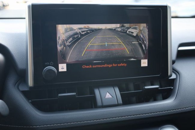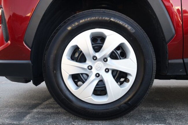 This RAV4 is well equipped with Black Cloth, 17" Steel Wheels, 4-Wheel Disc Brakes, 6 Speakers, ABS brakes, Air Conditioning, AM/FM radio: SiriusXM, Auto High-beam Headlights, Axle Ratio: 3.177, Brake assist, Bumpers: body-color, Driver door bin, Driver vanity mirror, Dual front impact airbags, Dual front side impact airbags, Electronic Stability Control, Emergency communication system: Safety Connect (10-year trial), Exterior Parking Camera Rear, Fabric Seat Trim, Four wheel independent suspension, Front anti-roll bar, Front Bucket Seats, Front Center Armrest, Front reading lights, Illuminated entry, Knee airbag, Low tire pressure warning, Occupant sensing airbag, Outside temperature display, Overhead airbag, Overhead console, Panic alarm, Passenger door bin, Passenger vanity mirror, Power door mirrors, Power steering, Power windows, Radio data system, Radio: AM/FM/XM Audio System, Rear anti-roll bar, Rear seat center armrest, Rear window defroster, Rear window wiper, Remote keyless entry, Speed control, Speed-sensing steering, Split folding rear seat, Spoiler, Steering wheel mounted audio controls, Tachometer, Telescoping steering wheel, Tilt steering wheel, Traction control, and Trip computer.