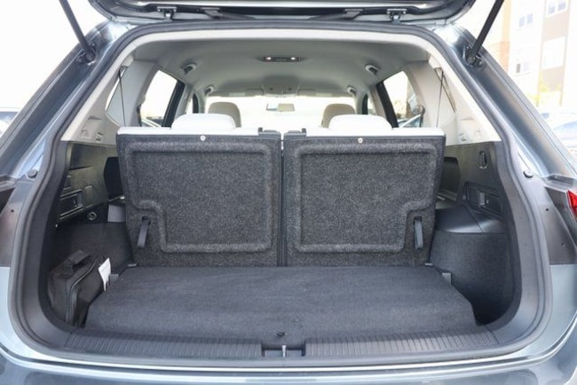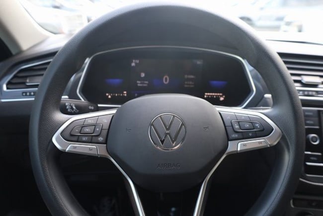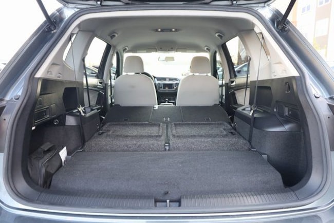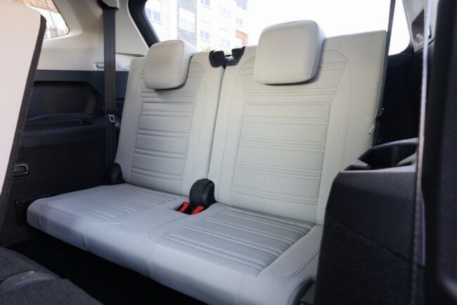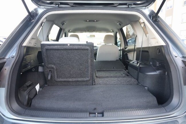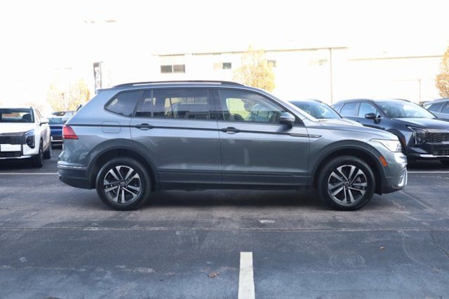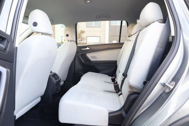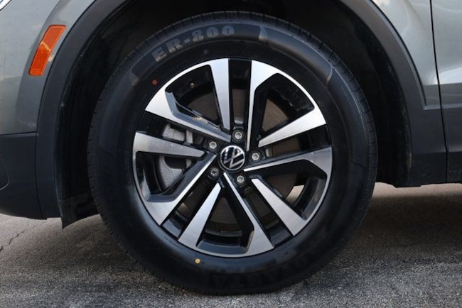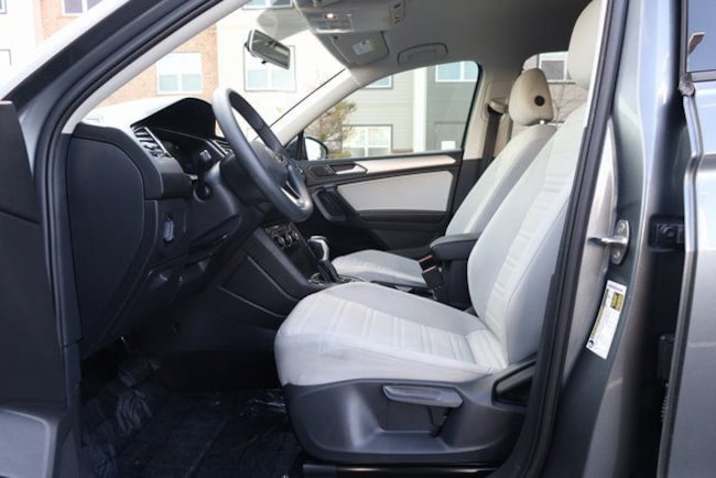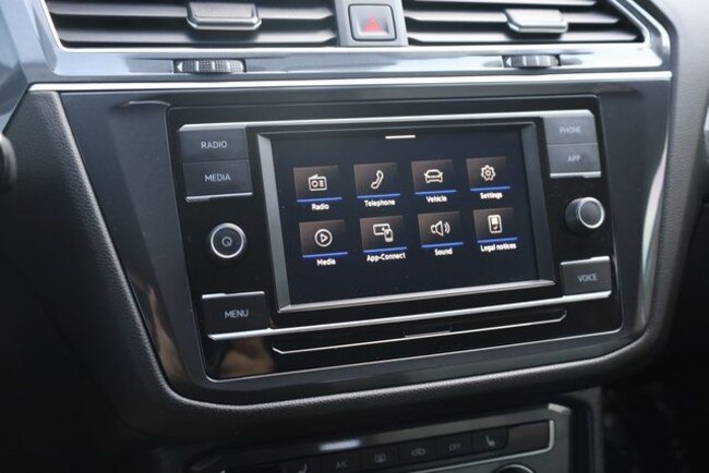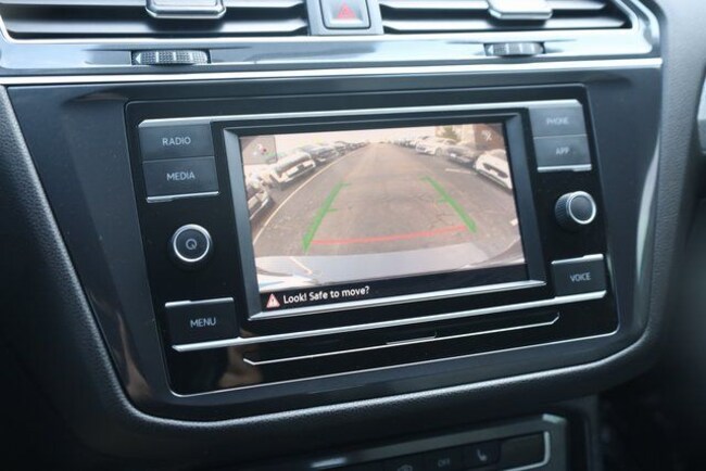 This Tiguan is well equipped with 3.33 Axle Ratio, 3rd row seats: bench, 4-Wheel Disc Brakes, 4-Wheel Independent Suspension, 6 Speakers, ABS brakes, Air Conditioning, Alloy wheels, AM/FM radio, Brake assist, Bumpers: body-color, Cloth Seating Surfaces, Compass, Delay-off headlights, Driver door bin, Driver vanity mirror, Dual front impact airbags, Dual front side impact airbags, Electronic Stability Control, Emergency communication system: Car-Net, Exterior Parking Camera Rear, Forward collision: FCW w/Autonomous Emergency Braking mitigation, Four wheel independent suspension, Front anti-roll bar, Front Bucket Seats, Front Center Armrest, Front reading lights, Fully automatic headlights, Heated door mirrors, Heated Front Bucket Seats, Heated front seats, Illuminated entry, Leather Shift Knob, Low tire pressure warning, Occupant sensing airbag, Outside temperature display, Overhead airbag, Overhead console, Panic alarm, Passenger door bin, Passenger vanity mirror, Power door mirrors, Power steering, Power windows, Radio data system, Radio: Composition Color AM/FM, Rear anti-roll bar, Rear reading lights, Rear seat center armrest, Rear window defroster, Rear window wiper, Remote keyless entry, Roof rack: rails only, Speed control, Speed-sensing steering, Split folding rear seat, Spoiler, Steering wheel mounted audio controls, Tachometer, Telescoping steering wheel, Tilt steering wheel, Traction control, Trip computer, Turn signal indicator mirrors, Variably intermittent wipers, and Wheels: 17" 2-Tone Machined Twin 5-Spoke Alloy.