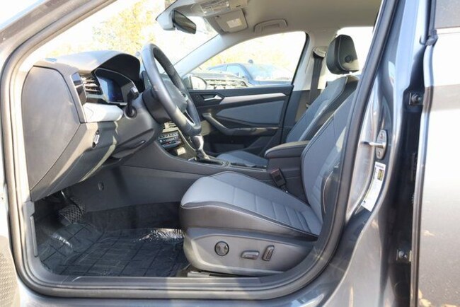 This Jetta is well equipped with Black Wheel Package (Wheels: 18" Dark Graphite Painted Alloy), Grigio/Titan Black Premium Synthetic, 4-Wheel Disc Brakes, 6 Speakers, ABS brakes, Active Blind Spot Monitor, Air Conditioning, Alloy wheels, AM/FM radio: SiriusXM with 360L, Auto-dimming Rear-View mirror, Automatic temperature control, Brake assist, Bumpers: body-color, CloudTex & V-Tex Leatherette Seat Trim, Delay-off headlights, Driver door bin, Driver vanity mirror, Dual front impact airbags, Dual front side impact airbags, Electronic Stability Control, Emergency communication system: VW Car-Net Safe & Secure 5-year, Exterior Parking Camera Rear, Front anti-roll bar, Front Bucket Seats, Front Center Armrest, Front dual zone A/C, Front wheel independent suspension, Fully automatic headlights, Heated door mirrors, Heated Front Seats, Heated front seats, Heavy Duty Trunk Liner w/VW CarGo Blocks, Illuminated entry, Leather Shift Knob, Leather steering wheel, Low tire pressure warning, Occupant sensing airbag, Outside temperature display, Overhead airbag, Overhead console, Panic alarm, Passenger door bin, Passenger vanity mirror, Power door mirrors, Power driver seat, Power steering, Power windows, Radio data system, Radio: MIB3 Composition Media w/8" Touchscreen, Rain sensing wipers, Rear anti-roll bar, Rear reading lights, Rear seat center armrest, Rear window defroster, Remote keyless entry, Rubber Monster Mats Kit (Set of 4), Speed control, Speed-sensing steering, Split folding rear seat, Steering wheel mounted audio controls, Tachometer, Telescoping steering wheel, Tilt steering wheel, Traction control, Trip computer, Variably intermittent wipers, and Wheels: 17" Twin 5-Spoke 2-Tone Machined Alloy.