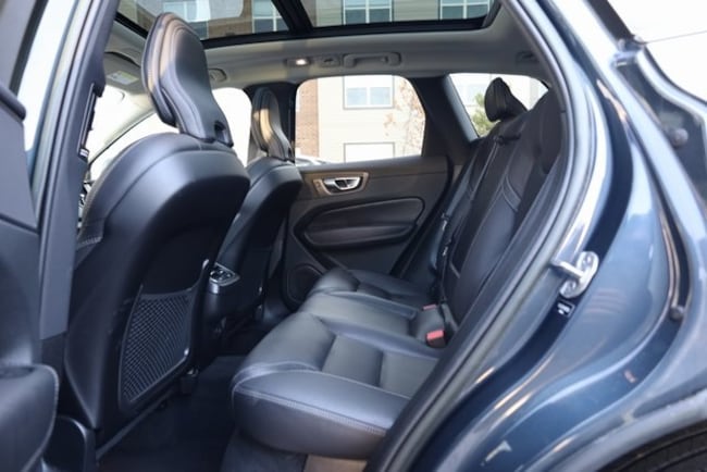 This XC60 is well equipped with AWD, 14 Speakers, 4-Wheel Disc Brakes, ABS brakes, Air Conditioning, Alloy wheels, Anti-whiplash front head restraints, Auto High-beam Headlights, Auto-dimming door mirrors, Auto-dimming Rear-View mirror, Automatic temperature control, Brake assist, Bumpers: body-color, Delay-off headlights, Driver door bin, Driver vanity mirror, Dual front impact airbags, Dual front side impact airbags, Electronic Stability Control, Emergency communication system: Volvo Cars App w/4 Year Subscription, Exterior Parking Camera Rear, Four wheel independent suspension, Front anti-roll bar, Front Bucket Seats, Front Center Armrest, Front dual zone A/C, Front fog lights, Front reading lights, Fully automatic headlights, Garage door transmitter: HomeLink, Genuine wood console insert, Genuine wood dashboard insert, harman/kardon® Speakers, Heated & Ventilated Front Bucket Seats, Heated door mirrors, Heated front seats, Illuminated entry, Knee airbag, Leather Shift Knob, Low tire pressure warning, Memory seat, Navigation System, Occupant sensing airbag, Outside temperature display, Overhead airbag, Panic alarm, Passenger door bin, Passenger vanity mirror, Perforated Nappa Leather Upholstery, Power door mirrors, Power driver seat, Power moonroof, Power passenger seat, Power steering, Power windows, Radio data system, Radio: harman/kardon Premium Audio System, Rain sensing wipers, Rear air conditioning, Rear anti-roll bar, Rear dual zone A/C, Rear fog lights, Rear reading lights, Rear seat center armrest, Rear window defroster, Rear window wiper, Remote keyless entry, Security system, Speed control, Split folding rear seat, Spoiler, Steering wheel mounted audio controls, Tachometer, Telescoping steering wheel, Tilt steering wheel, Traction control, Trip computer, Turn signal indicator mirrors, Variably intermittent wipers, Ventilated front seats, and Wheels: 19" 5-Multi Spoke Black Diamond Cut Alloy.